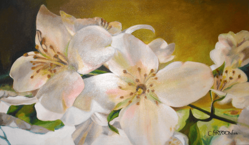 Fleurs de pommier, 2008, acrylique sur toile, 99,5×57,8cm, signée, © all rights reserved.